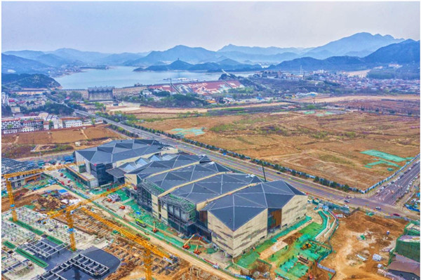北京市平谷區金海湖畔,一幅用建築寫就的山水畫卷正演繹着大美無言。4月10日,2020世界休閑大會主場館——金海湖國際會展中心首次揭開面紗。金海湖國際會展中心,總建築面積約6.5萬平方米,其中地上3.7萬平方米,地下2.8萬平方米,包括展廳、多功能廳、新聞發佈廳、會議室、報告廳及配套服務設施等。建設完成後,將服務於2020世界休閑大會及世界休閑產業博覽會,中長期將服務於北京市重要會議會展、文化交流活動以及金海湖特色休閑旅遊度假小鎮。金海湖國際會展中心以平谷區特有的「山」「谷」地貌特徵為靈感,提取山谷形態進行邏輯化的演變再生,形成契合環境的地景形態關係。(平谷宣傳部供圖)