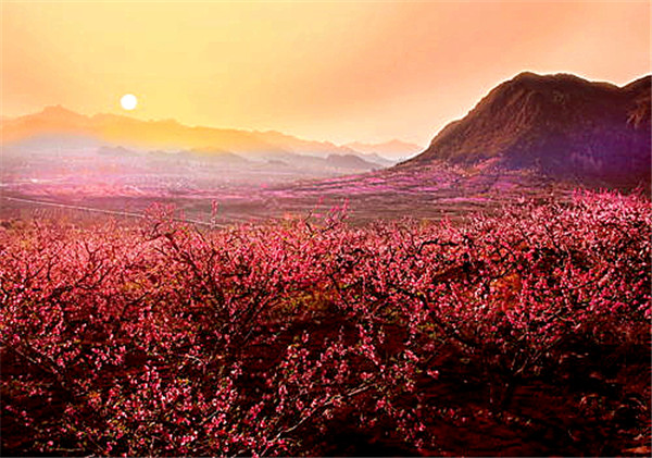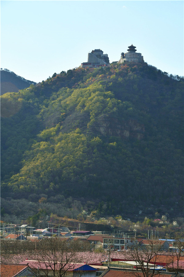 在平谷萬畝桃花核心區劉家店鎮國家4A級景區丫髻山腳下,桃花盛開,山居批翠,山巔兩塊巨石狀若古代女孩頭上的丫髻,在春風和桃花海中分外靈秀。丫髻山海拔363米,山上山下共建有古建築群十八餘處,自元代始,一直是京城人瞻拜祈禱的聖地。其舉辦的東大山廟會為華北地區四大廟會之一。山上有著名的碧霞元君祠、雲岩寺等,是理想的避署郊遊,農業觀光、宗教信仰活動場所。(攝影楊凌雲)