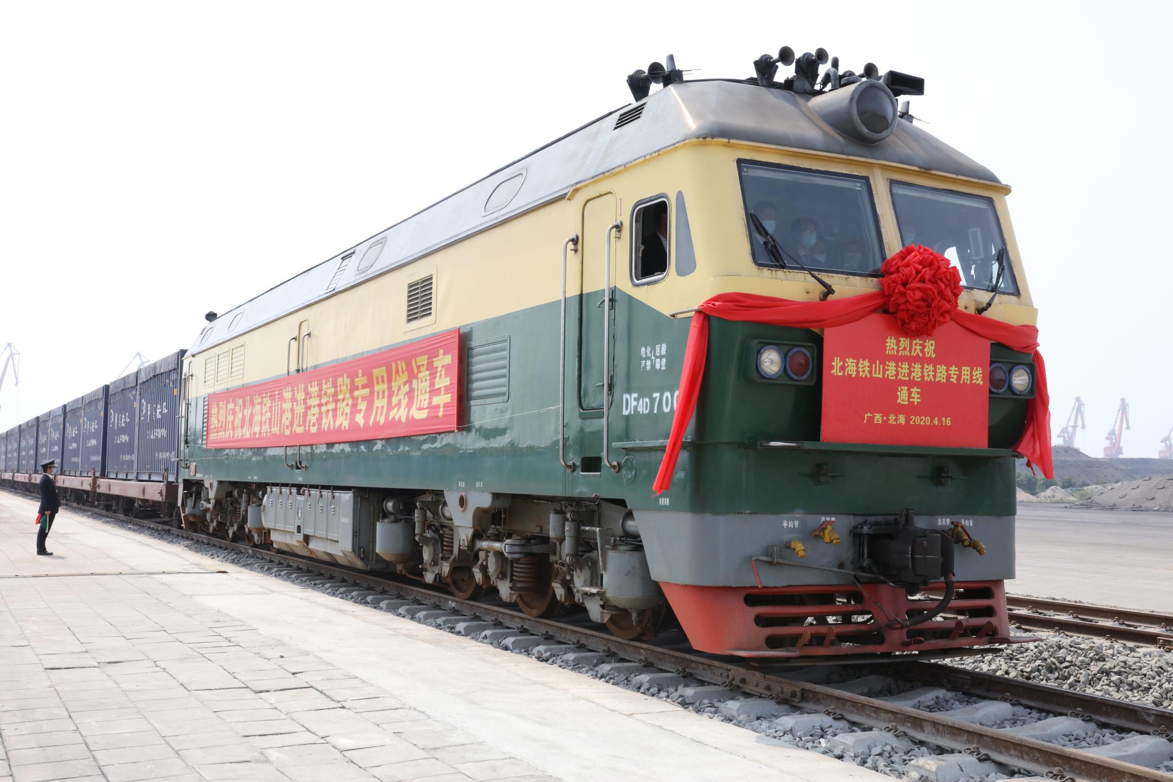 【香港商報網訊】記者 徐玉瑩 報導:4月16日,廣西北海鐵山港進港鐵路專用線正式通車,0416次列車裝載着60箱原煤從鐵山港開出駛往玉林,實現了北海鐵山港國內外物資港口與鐵路無縫對接,至此,北部灣重要港區實現鐵路進港全覆蓋。
