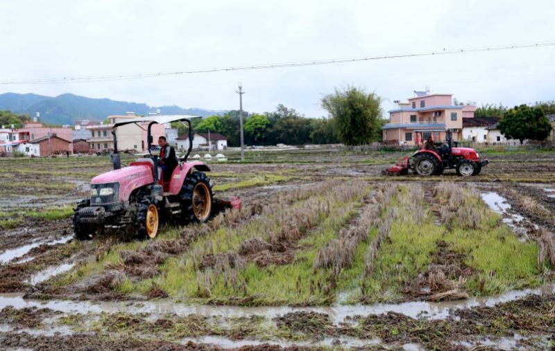 據介紹,楓灣鎮今年計劃種植的逾萬畝早造水稻插秧面積已全部完成。為擴大水稻種植面積及確保夏糧增收,該鎮按下「快進鍵」開足馬力推進拋荒田復墾複耕,毫不放鬆抓好糧食生產。在上級主管部門的大力支持下,全鎮各村結合自身實際有針對性地打通復墾複耕「堵點」、解開糧食生產「難點」、化解土地流轉「痛點」,為群眾復墾翻耕糧食生產保駕護航。
