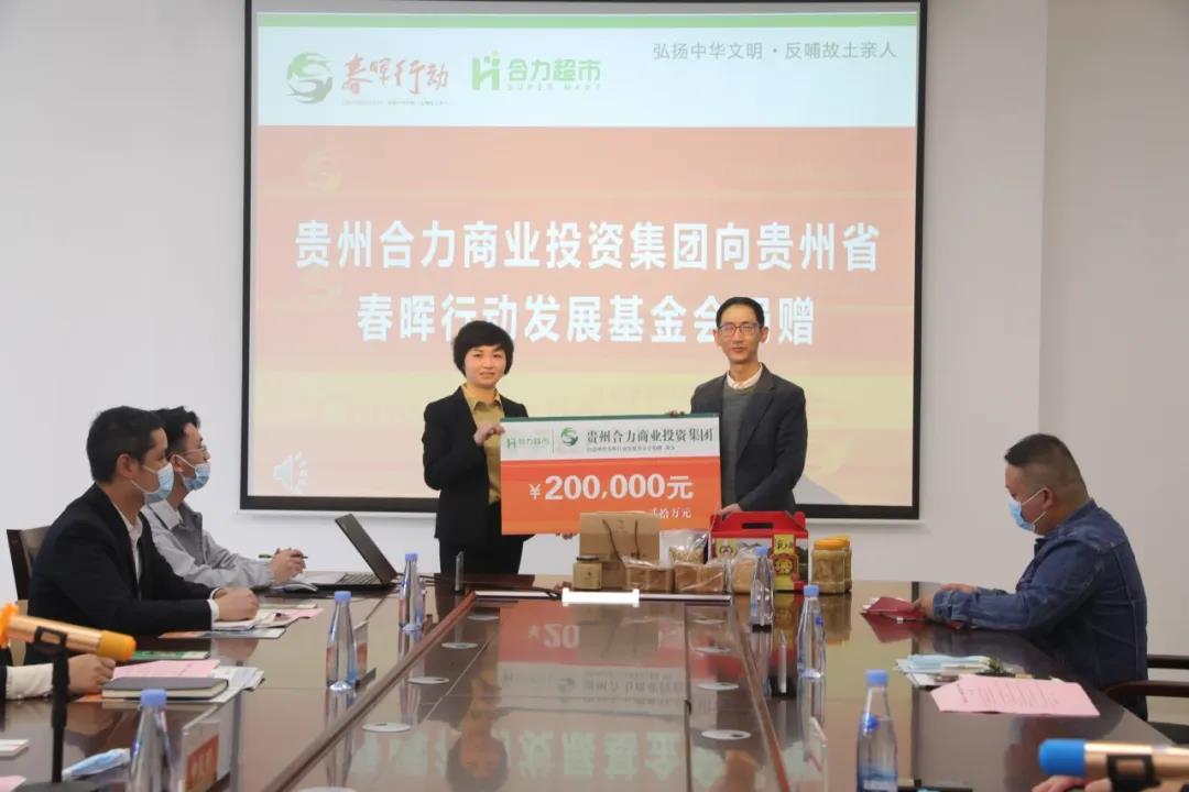 在啟動儀式上,貴州合力商業投資集團副總裁申民明受集團董事長李德祥先生委託,代表貴州合力商業投資集團向貴州省春暉行動發展基金會捐贈公益基金20萬元,鄧守成向貴州合力商業投資集團授「春暉愛心企業」牌匾並為春暉使者頒發聘書。