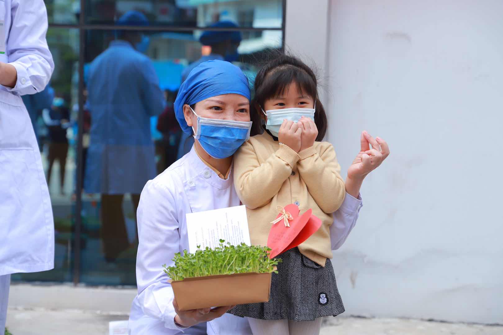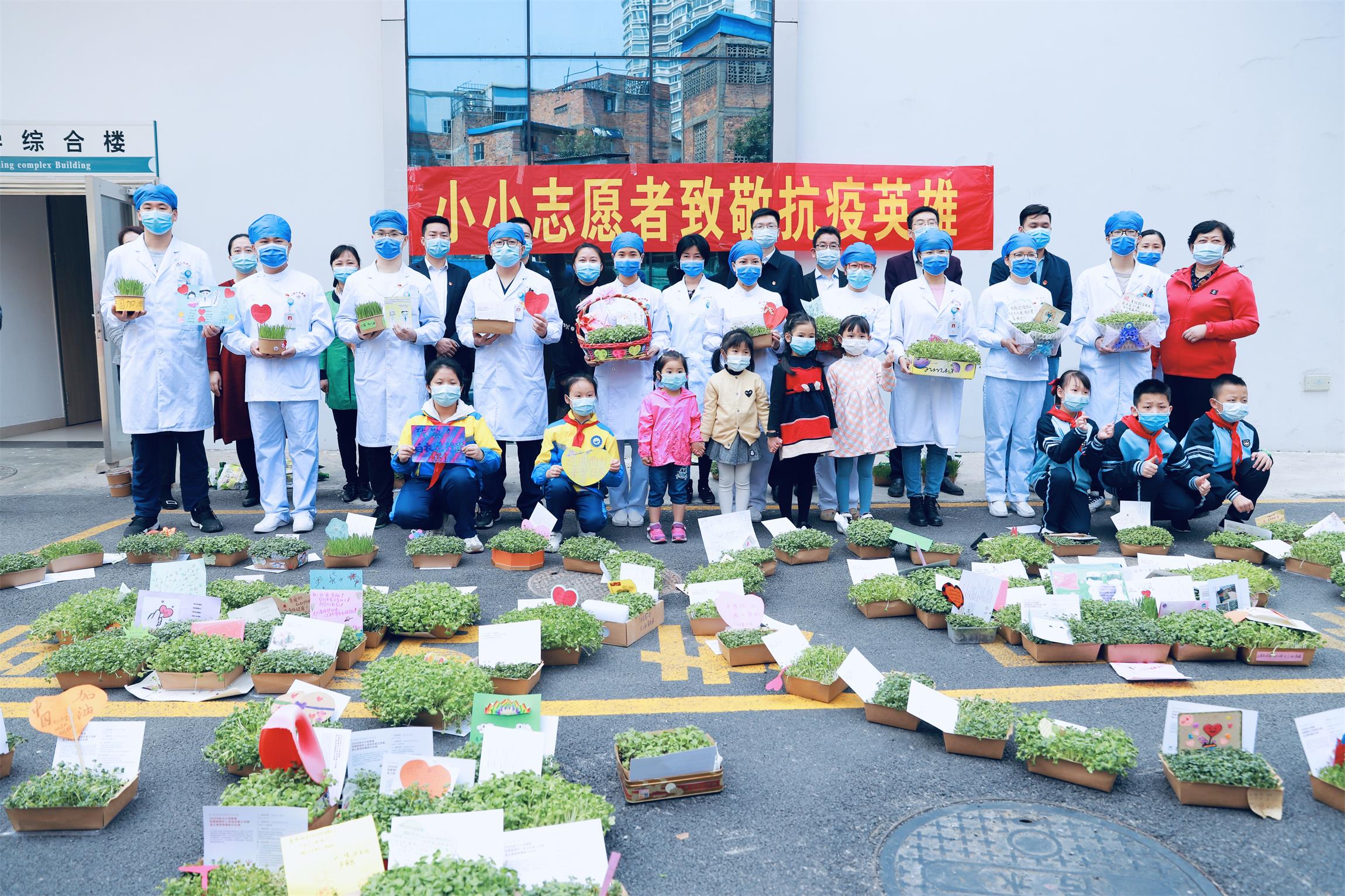 醫護人員收到小小志願者在家種植的小綠植、祝福卡和信件