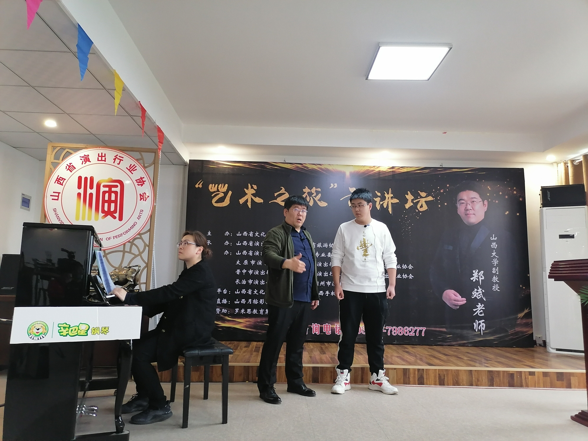 據了解,此次雲講壇第一期主講是山西大學副教授、碩士生導師鄭斌,從山西是民歌的海洋講起,探討山西民歌發展的方向和路徑,對歌曲處理和發聲等方面進行了系統教學和學員輔導。