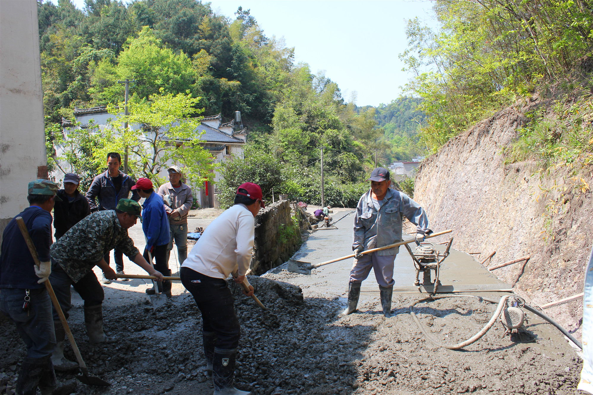 【香港商報網訊】日前,在安徽黃山市休寧縣海陽鎮首村村塘口道路建設项目施工現場,兩輛農用運輸車在交錯地運輸混凝土,10餘名村民正在有序施工。“這個项目下周就能完成,今年全鎮剩下的2個扶貧项目最遲也可以在5月底前完工。”海陽鎮分管扶貧負責人說道。