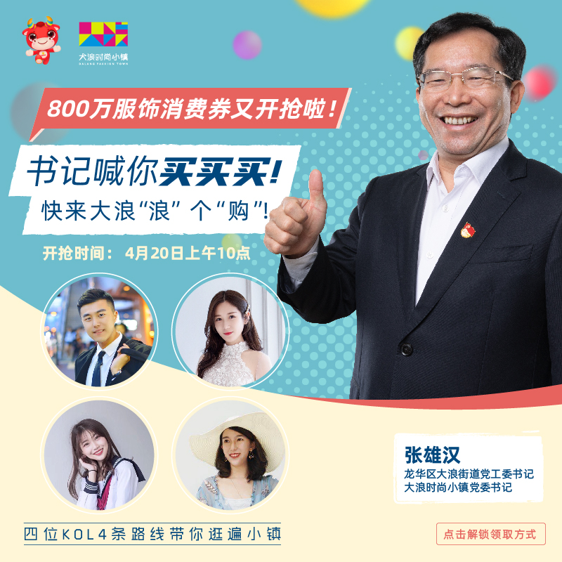 【香港商報網訊】政府派券、書記代言、網紅探店、微博熱議……疫情之下,企業復工復產之後怎樣才能復市?政府發放的消費券怎麼才能成為市場「興奮劑」?門店讓利折扣信息怎麼才能傳播得更廣?針對這些問題,4月20日起,大浪時尚小鎮黨委(下面簡稱「小鎮黨委」)結合龍華區政府800萬服飾消費券的第二波大放送紅利,開展「書記喊你買買買」小鎮逛買路線推廣活動。
