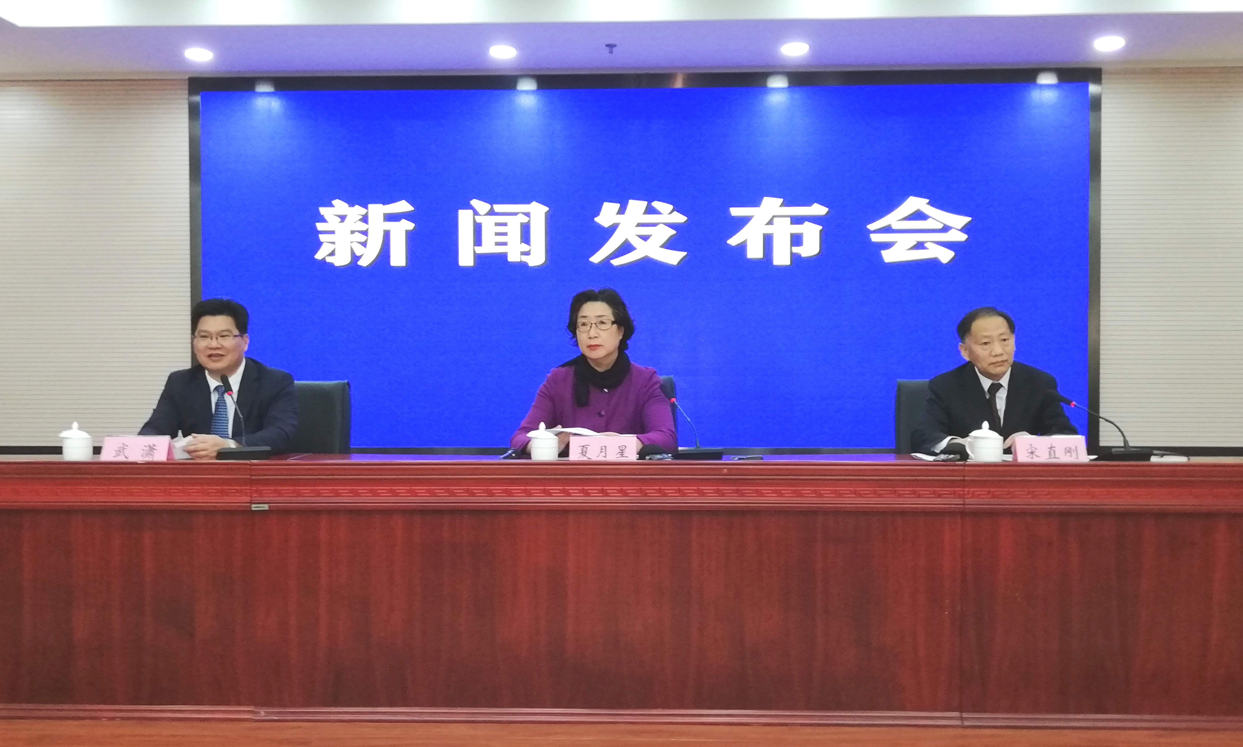 發佈會現場。左起:安徽省委宣傳部新聞發佈處處長武瀟主持發佈會,省司法廳副廳長夏月星介紹相關情況,省住建廳副廳長宋直剛先後回答記者提問(孫軍/攝)