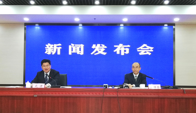 發佈會現場 左起:安徽省委宣傳部新聞發佈處處長武瀟主持,省信訪局黨組成員、副局長王祥榮介紹相關情況並答記者問