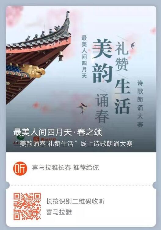 【香港商報網訊】春天不僅是播種希望的季節,也正是閱讀的好時光。在四月芳菲時節,長春市啟動「最美人間四月天」長春春季系列文旅活動,其中「春之頌」版塊的長春閱讀推廣系列活動以4·23世界讀書日為契機,特別推出「美韻誦春 禮讚生活」線上詩歌朗誦大賽。大賽自4月5日起廣泛徵集以禮讚春天、描繪春城、讚美家鄉、歌頌祖國、謳歌新時代、傳遞正能量等主題的優秀詩歌朗誦作品,用優美的聲音傳遞溫暖和力量。