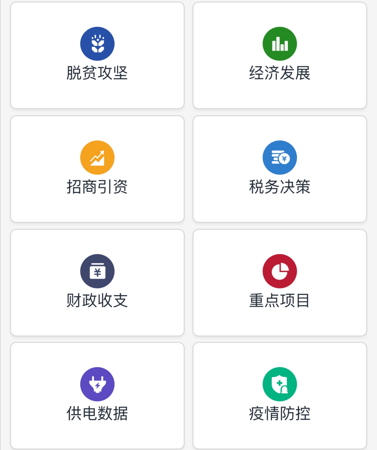 據了解,此次上線的8個主題,涵蓋全市經濟運行、產業發展基本面的重要主題,包括「稅務決策、脫貧攻堅、財政收支、重點項目、招商引資、經濟發展、疫情防控、供電數據」等。通過多維度、多層次、可視化的展現方式,讓相關領導能夠一目了然地掌握這些領域的整體趨勢,也能一探到底,精準地把握具體問題。以「脫貧攻堅」為例,在「粵政易」上,不僅能夠看到全市脫貧攻堅工作倒計時,看到已脫貧、未脫貧戶的總體數據、地域分佈,還能看到「一戶一策」的推進情況,為各級領導精準施策提供了重要參考依據。