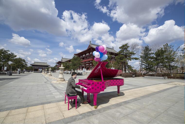 「今天天真藍,藍天白雲跟粉紅色鋼琴最搭配,我是特意來跟拍『春之聲』活動的。你看,在鏡頭下這畫面多美!」在觀眾隊伍中,一位「熟面孔」,攝影愛好者宋先生一邊讚歎,一邊向大家展示「作品」。作為全市系列文化活動的參與者與見證者,他感到既興奮又自豪。