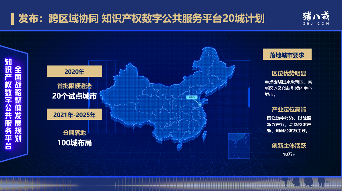 與此同時,八戒知識產權數字公共服務平台20城計劃在中國(山東)自貿區青島片區首發。據悉,八戒知識產權將在國家級新區、自貿區、高新區或創新中心城市遴選首批20個試點城市,圍繞數字經濟,以戰略新興產業、高新技術產業、知識經濟為主導,聚集知識、人才、資本等創新要素,為區域構建數字平台,實現跨區域協同。