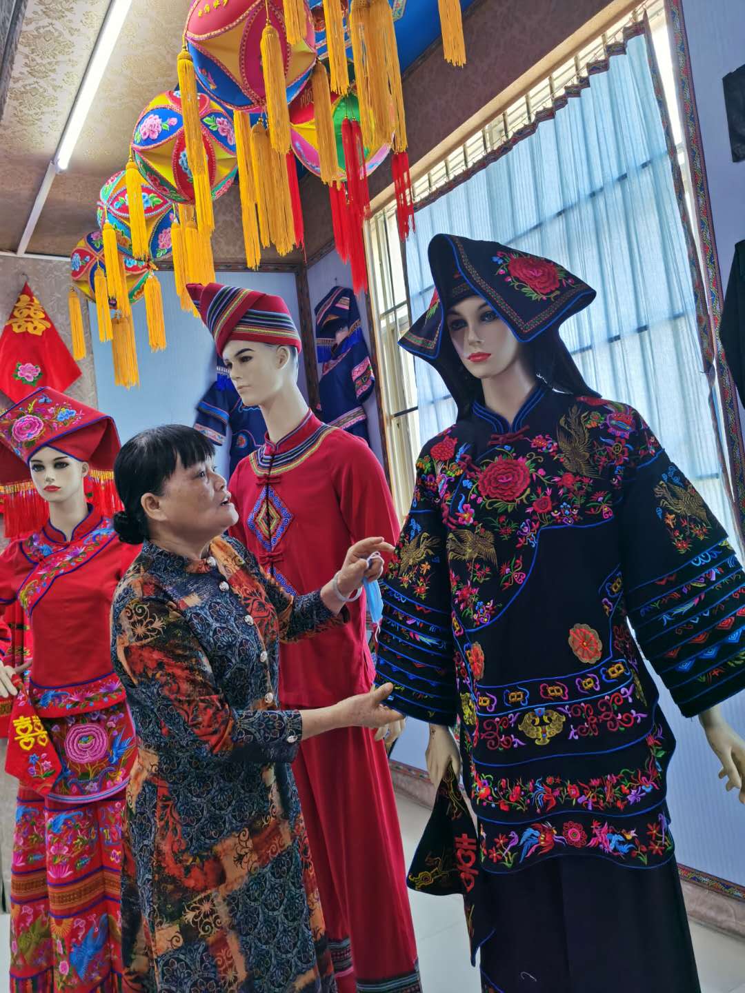 壯族彩綉技藝作為廣西壯族獨有的刺繡技藝,是廣西壯民族文化的重要標識,也是壯民族的古董技藝,其產生的文化影響深遠。陸蘭珍作為壯族彩綉技藝的傳承人,先後傳授技藝200多人,師帶徒9人,並於2013年開辦納福彩綉手工坊,帶領團隊在傳統壯繡的基礎上融入現代時尚元素,綉品舒展大氣、經久耐用,更富視覺衝擊效果,深受大眾喜愛,作品銷往國內外各地,多次參展並獲獎。2019年廣西部分人大代表穿上陸蘭珍團隊精心製作的民族服飾參加全國「兩會」,成為「兩會」期間一道靚麗的風景線。