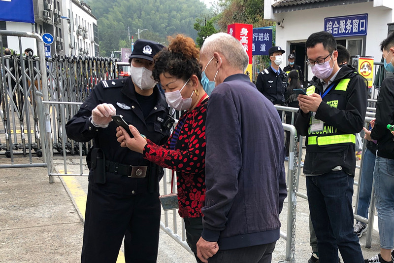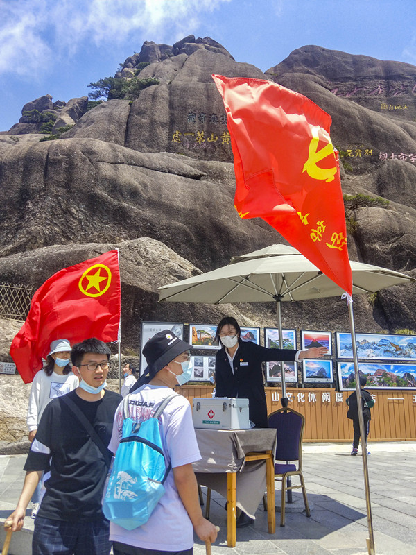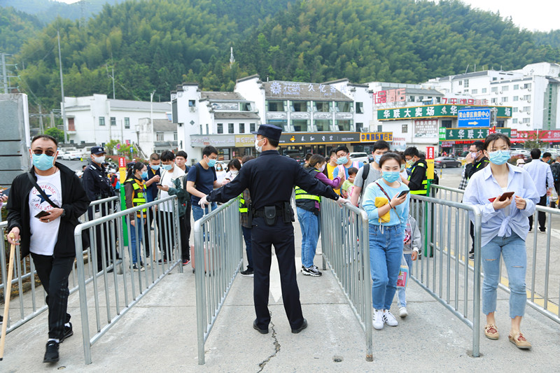 遊客進入景區時須進行“安康碼”掃碼核驗、測體溫、戴口罩並出示預約購票成功資訊,在景區南、北門集散中心均設立了紅外線熱成像儀,可實現自動感應測溫。