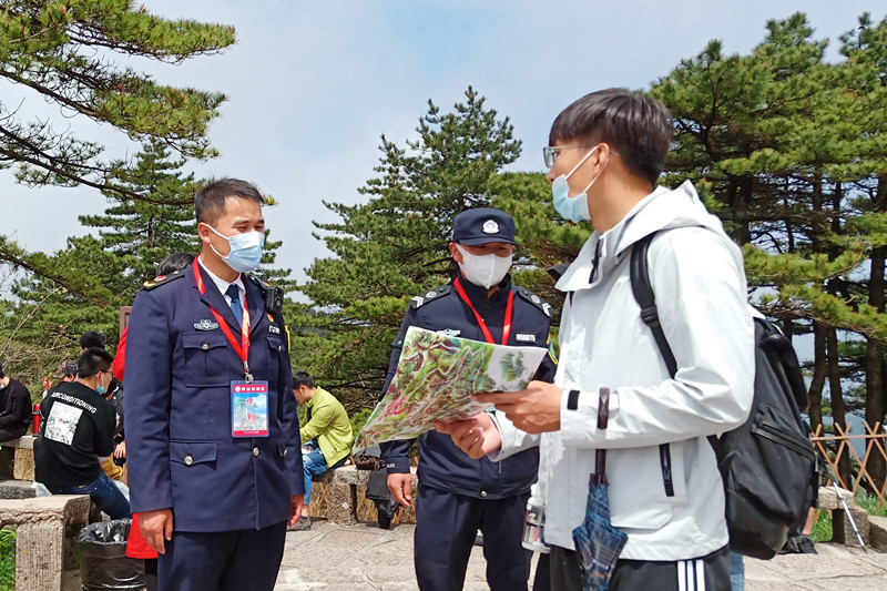 記者了解到,5月2日,黃山風景區客流車流較昨天有所增長。景區南大門片綜治、公安、交通、市場監管等部門370多名幹部員工於4點30分全員上崗,做好交通、遊覽、經營、治安秩序管理。