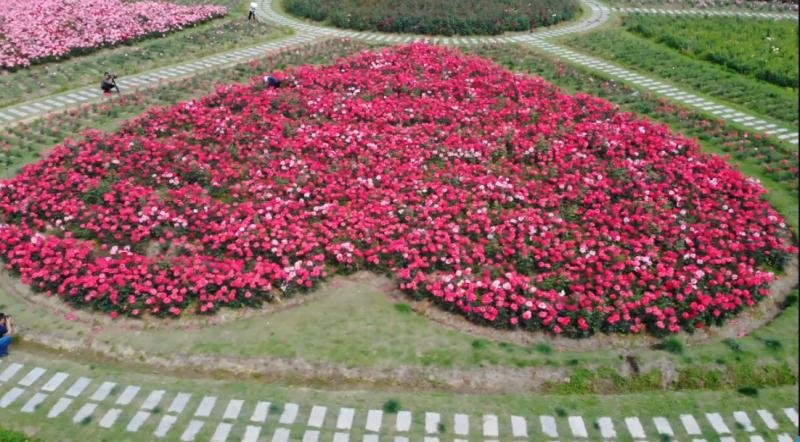 走近安徽歙縣鄭村鎮棠樾村“四月鄉村”農藝場縱橫交錯的花田裏,各種造型的月季花海就像是一塊塊色彩斑斕的織錦地毯,朵朵月季花或嬌豔欲滴,或含苞待放,或燦若雲霞。各種顏色的月季花點綴著少許的露珠,在陽光的照耀下相互交錯,勃發著一派生機,吸引著無數蜜蜂辛勤采蜜。農藝場內,數百米長的月季花廊,由一座座月季花拱門組成,每座拱門上攀附的月季花花色和品種都各不相同,彎彎曲曲如迷宮陣,三三兩兩的市民徜徉在月季花海中,盡情享受假日時光。