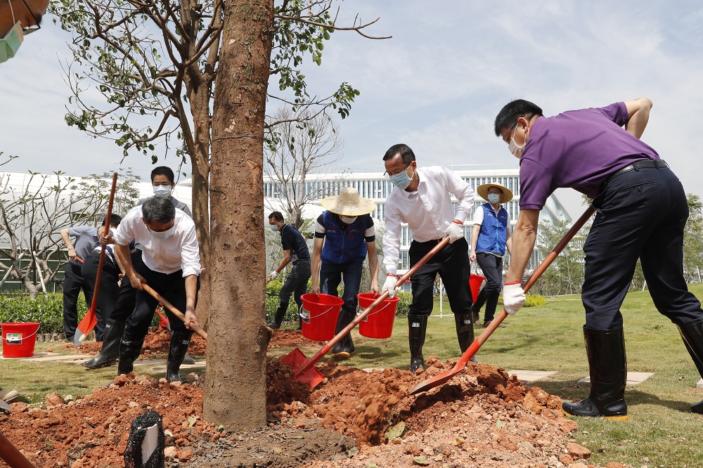 【香港商報網訊】記者 冷運軍 報導:植樹添新綠,造林正當時。4月30日上午,廣東省東莞市濱海灣新區舉行義務植樹活動,以實際行動為新區添新綠、增顏值,積極構建「一廊三綠心三水系」生態格局。