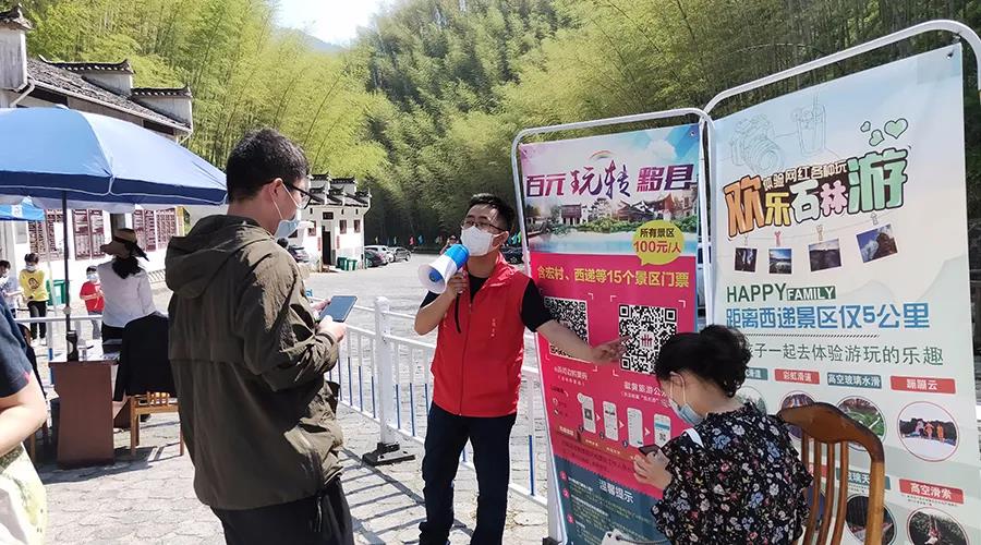 據了解,為更好地助力旅遊市場回暖,做好節假日期間旅遊服務工作,黟縣文明辦、文旅體局、團縣委組織志願者在各大交通要道和景區路口等遊客量大的地方值守。今年因為疫情原因,大家除了開展諮詢引導等常規服務外,還會提醒過往遊客戴口罩,並提醒遊客在人員密集處注意做好個人防護、文明旅遊、安全出行。
