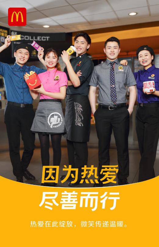 麥當勞於1990年進入中國內地,從深圳第一家餐廳發展到今天的3,500多家餐廳,陪伴一代又一代顧客度過歡樂時光。麥當勞中國首席執行官張家茵表示:“三十周年之際,麥當勞發佈‘因為熱愛,盡善而行’品牌理念,勉勵我們堅守初心,用熱愛創造更多可能,用善意帶來更多美好。我們在中國內地取得的成績,離不開員工、供應商和被特許人的攜手努力。‘熱愛’始終流淌在我們每個人的血液裏,專注為顧客打造盡善盡美的用餐體驗;而‘善’一直指引著我們的發展方向——我們用嚴苛的標準對待每一份餐食,為顧客提供新鮮安心的美味;我們運營綠色餐廳、優化綠色包裝,通過一系列綠色行動讓麥當勞成為‘美麗中國’的一部分,讓金色拱門更加閃閃發亮。”
