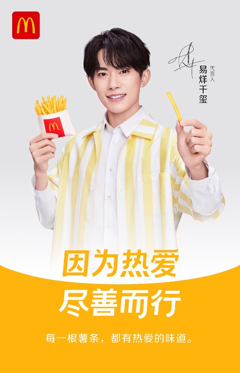 麥當勞與易烊千璽的攜手將推動“因為熱愛,盡善而行”這一品牌理念深入人心,激發更多年輕人遵循內心熱愛,為自己、為世界盡善而行。