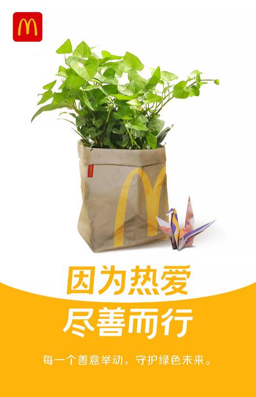 在業務快速發展的同時,麥當勞對身處的社區和環境同樣心懷赤忱,努力打造綠色餐廳、持續優化綠色包裝,充分利用自身的規模,用一系列綠色行動助力可持續發展。麥當勞中國承諾,到2022年開設超過1,800家“綠色餐廳”,符合美國綠色建築委員會頒發的LEED認證標準;2020年,麥當勞中國所有的紙制包裝,都將100%來自經森林管理委員會FSC(Forest Stewardship Council)認證的原紙。