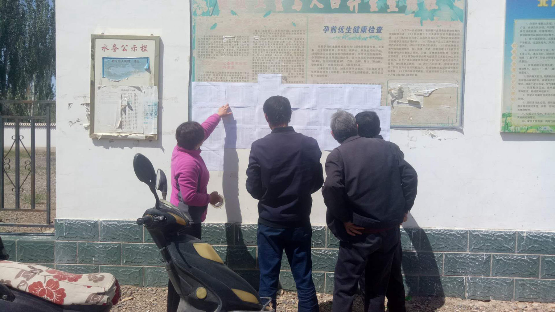 村民正在查看農村集體經濟組織成員身份界定三榜公示 (王麗萍 攝)