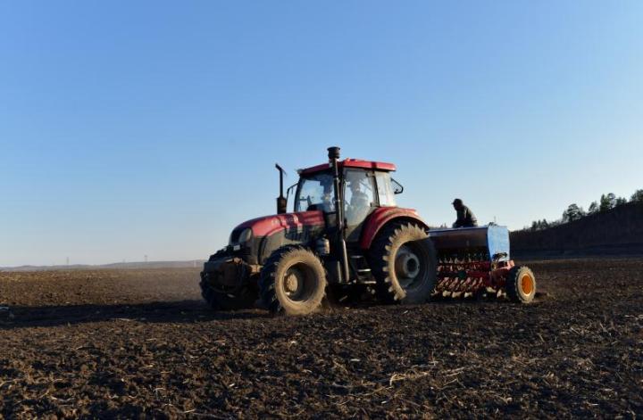 廣袤的黑土地上機聲隆隆,一台台大型拖拉機在田野上不停地奔跑,時而帶起陣陣塵土,有的在耙地,有的在播籽。為了搶農時,早耕種,離家遠的農民還將午飯送到田間地頭,吃完飯、喝口水,稍事休息,前後不超過1個小時,接着又忙碌起來。呼瑪縣鷗浦鄉懷柔村天和家庭農場的幾台大型拖拉機這幾天一直在田間忙着播種小麥,為的就是早播完早放心,不用再擔心因天氣變化而種不上地了。