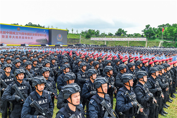 2019年7月30日,廣東公安機關新中國成立70周年國慶安保誓師大會暨夏季大練兵啟動儀式在廣東省公安民警培訓中心舉行(攝影:韋昌鴻)