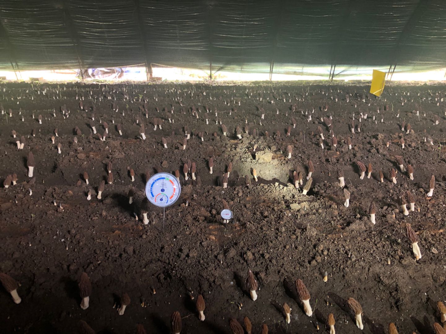 張景東遞給記者一支手電筒,進入為數不多還沒有採摘的大棚里,記者低下身細看,一個個菌柄白白胖胖,菌蓋部分凹凸成蜂窩狀,酷似翻開的羊肚,像打着雨傘的小妹妹。再往裏面走記者看到地上插着兩個溫度計,張景東稱,「一個是棚內溫度15℃,一個是地表溫度10℃,這是最適合羊肚菌生長的溫度。」張景東又帶着記者參觀採摘好的羊肚菌,拿起來看到羊肚菌中間是空心的,捏起來軟軟的,有彈性,細聞還帶着泥土的芬芳。張景東稱,與木耳所用原材料木腐菌相比,羊肚菌是土腐菌,主要成分是小麥粒和稻殼,剩下的菌包可以做成有機肥,不會像木腐菌那樣「滿天飛」。