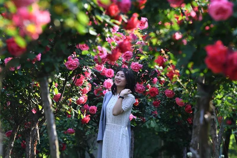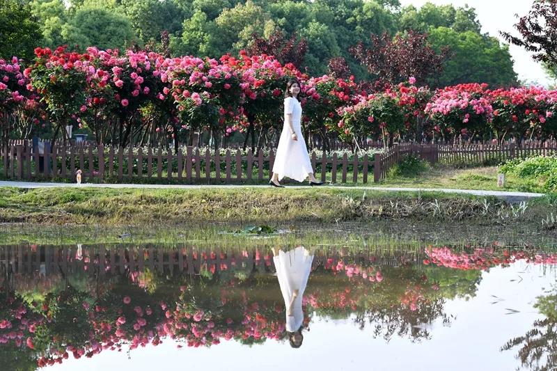 你在花間看風景,看風景的人在湖畔看你。「五一」小長假期間,安徽合肥天氣晴好,位於合肥經開區內的南艷湖公園1605株高桿月季競相綻放,形成了30餘畝的絢爛花海,吸引眾多市民和遊客觀賞與打卡。(張大崗 柏永)