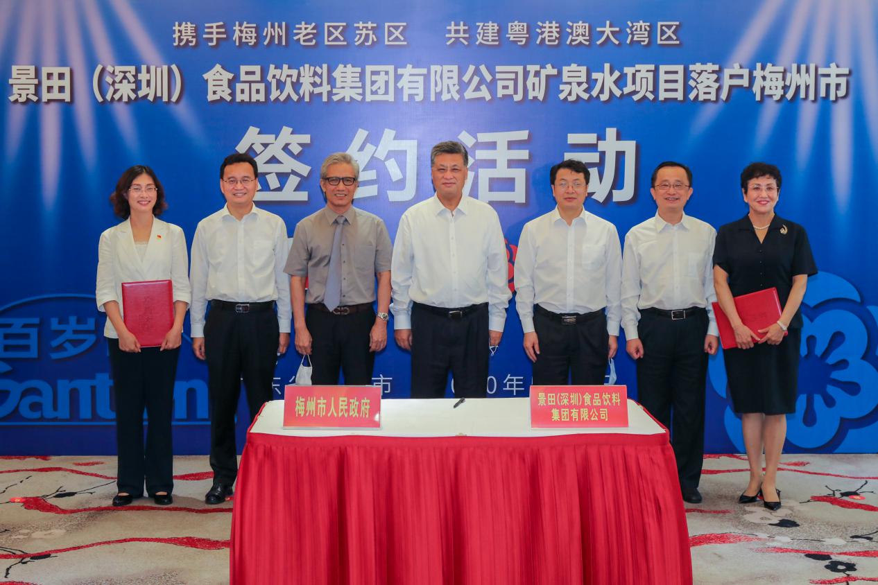 梅州位於廣東省生態發展區,生態環境優美,是遠近聞名的“長壽之鄉”,其地層數百米下的岩石層更擁有十分豐富的天然礦泉水資源。景田集團作為廣東省的龍頭企業,其旗下的百歲山品牌,不僅在國家級風景區羅浮山脈擁有世界單體產量最大的礦泉水工廠,還將產品銷往了近30個國家和地區,且百歲山品牌對水源要求十分苛刻,只選取地層數百米下的花崗岩層的礦泉水水源,而這些水源都需要經過數百年才能形成。此次簽約,百歲山收穫了一處優質水源,而梅州也將藉以百歲山品牌的國際影響力發展自身。