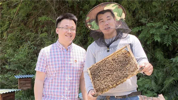 下徑村貧困戶黃小億告訴記者,「工作隊給我們提供了蜂箱、資金,幫我們擴大了規模,2016年就有40多箱了,現在有200箱左右,一年最高峰產蜜5000斤左右,賣出去可以有七八萬塊錢收入。」