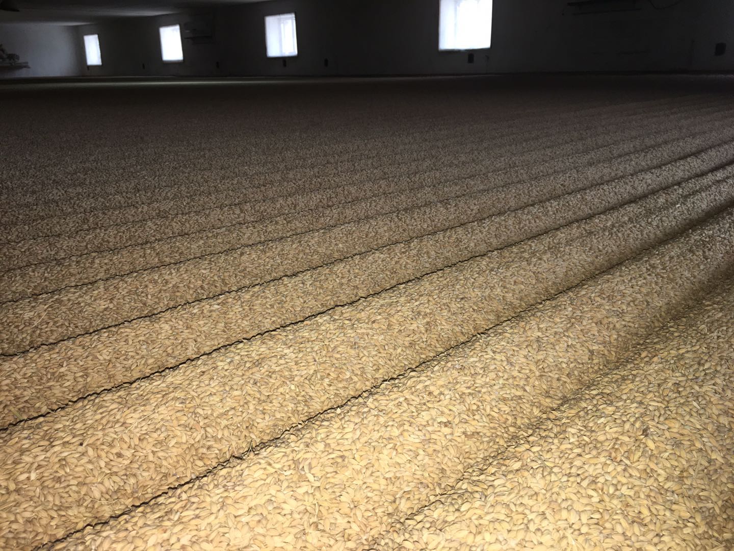 在一片片即將收穫的麥田旁,記者跟隨工作人員爬上糧倉。一打開門,滿倉的谷香撲面而來,蓋住了身後海風的濕涼。站在六米高的谷堆上,記者看到,倉內金黃色的稻穀被均勻刮成一道道瓦楞狀。工作人員向介紹,這是為了防止通風時稻穀凝結過多露水,通過刮楞,增加稻穀表面積,讓水汽更容易散開,稻穀不易腐爛。據介紹,這裡的國標儲備糧庫總投資1200多萬元,佔地32000平方米,於2016年成為中儲糧上海直屬庫倉儲基地,可存儲稻穀2.5萬噸。