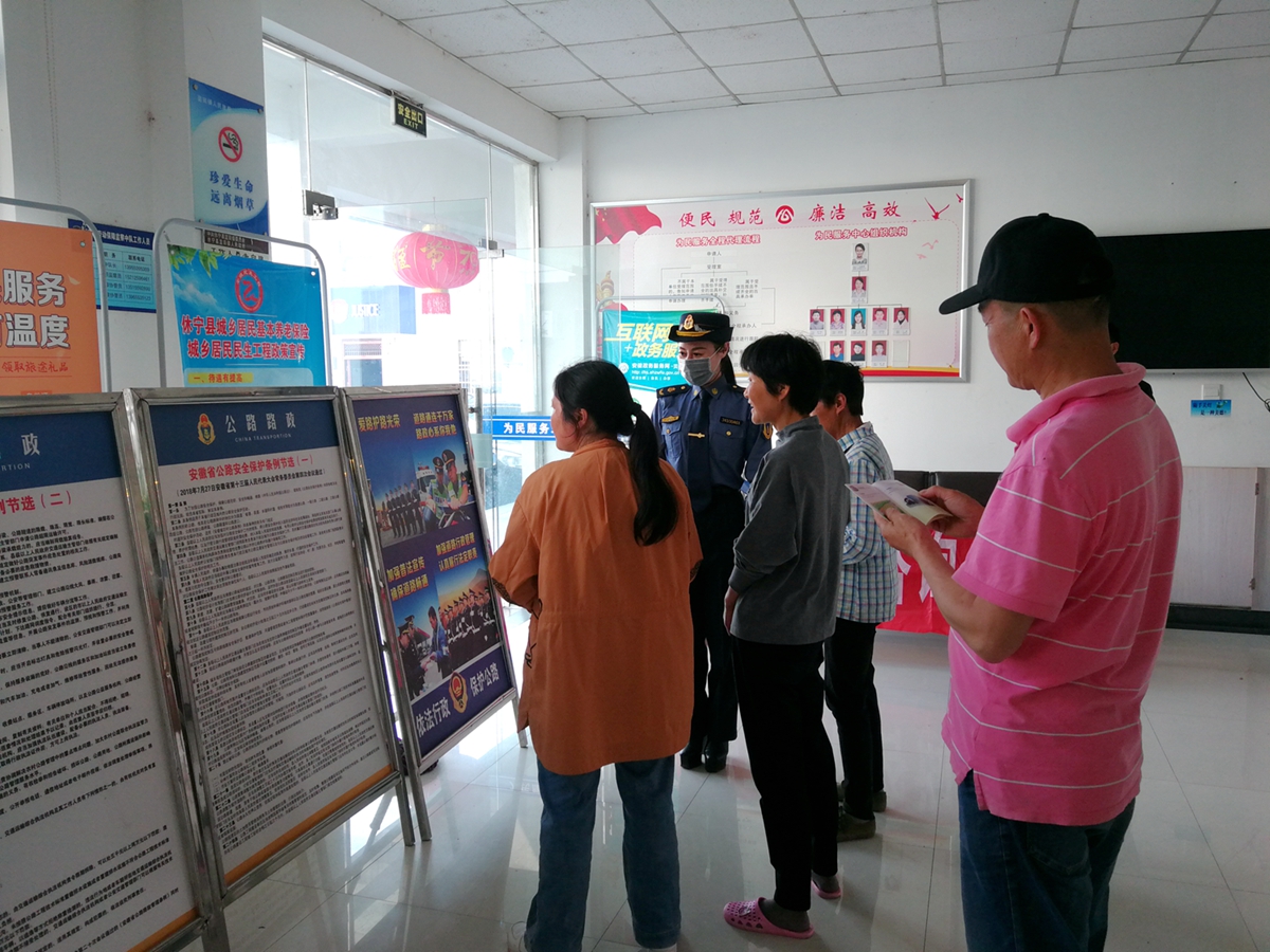 5月是全國“路政宣傳月”,為切實開展好“路政宣傳月”活動,推進依法治路進程,營造全民參與公路交通治理的和諧氛圍,連日來,該分局路政執法人員深入沿線鄉鎮、公路沿線、高速公路出口,多管道多形式豐富路政宣傳活動。路政執法人員通過擺放宣傳展板、發放宣傳材料、設置路政諮詢臺、徵求意見建議等方式,面對面向車主、司機、旅客、村民宣傳講解《公路安全保護條例》、《超限運輸車輛行駛公路管理規定》等公路法律法規,與他們交流互動,提高路政宣傳效果和親和力。