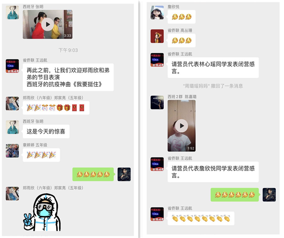 一段由營員鄭雨欣和弟弟聯合演繹的西班牙抗疫歌曲《我要挺住》唱跳視頻拉開了營員和家長分享感言的序幕。