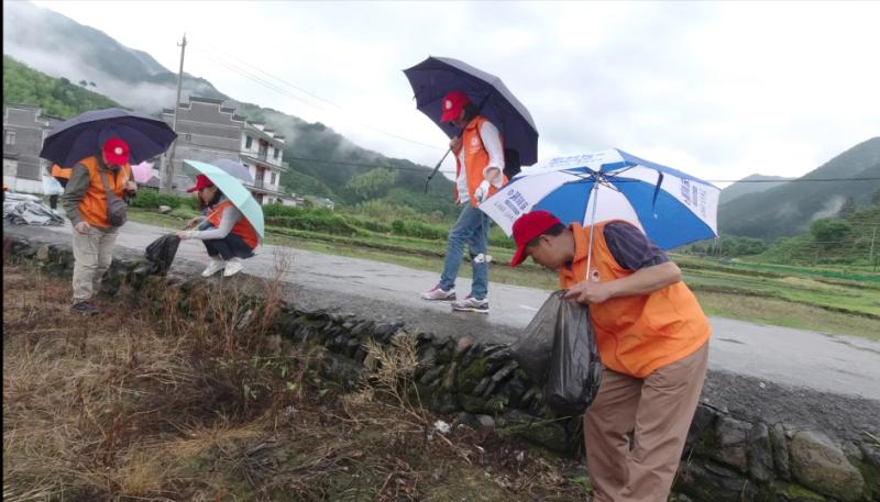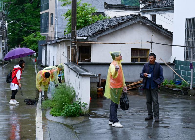 雨後的“志願紅”與黛綠的鄉村中相互映襯,氤氳出一幅人與自然和諧共生的美景。黃山市委宣傳部黨員鄭希說:“公益在風景中,活動很有意義,看到了新安江源頭村莊的美,對保護生態的理解也更加深刻。”