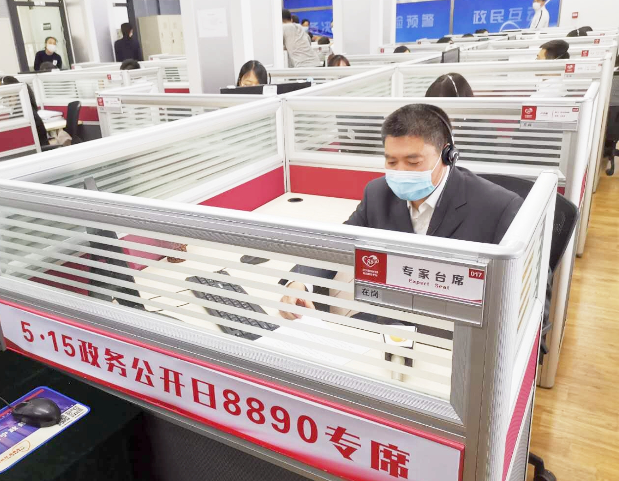 遼寧省教育廳副廳長李慶才在「8890」綜合服務平台接聽群眾電話