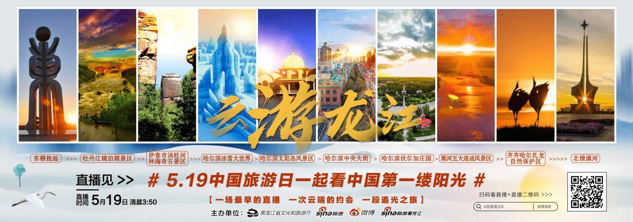 與此同時,5月19日當天,新浪網將上線「雲遊龍江——5.19中國旅遊日一起看中國第一縷陽光」直播活動。攜手黑龍江省重點景區,共同推出5.19中國旅遊日有史以來最早的一場直播。直播將跟隨着灑入祖國大地的第一縷陽光,從第一個迎接日出的城市東極撫遠開始,途經牡丹江鏡泊湖風景區、伊春湯旺河林海奇石景區、哈爾濱太陽島風景區、冰雪大世界、中央大街、伏爾加莊園、黑河五大連池風景區、齊齊哈爾扎龍自然保護區、大興安嶺漠河北極村旅遊區,帶各位網友逐一瀏覽龍江美景,了解最富龍江特色的大森林、大界江、大湖泊、大濕地、大熔岩等優勢旅遊產品。