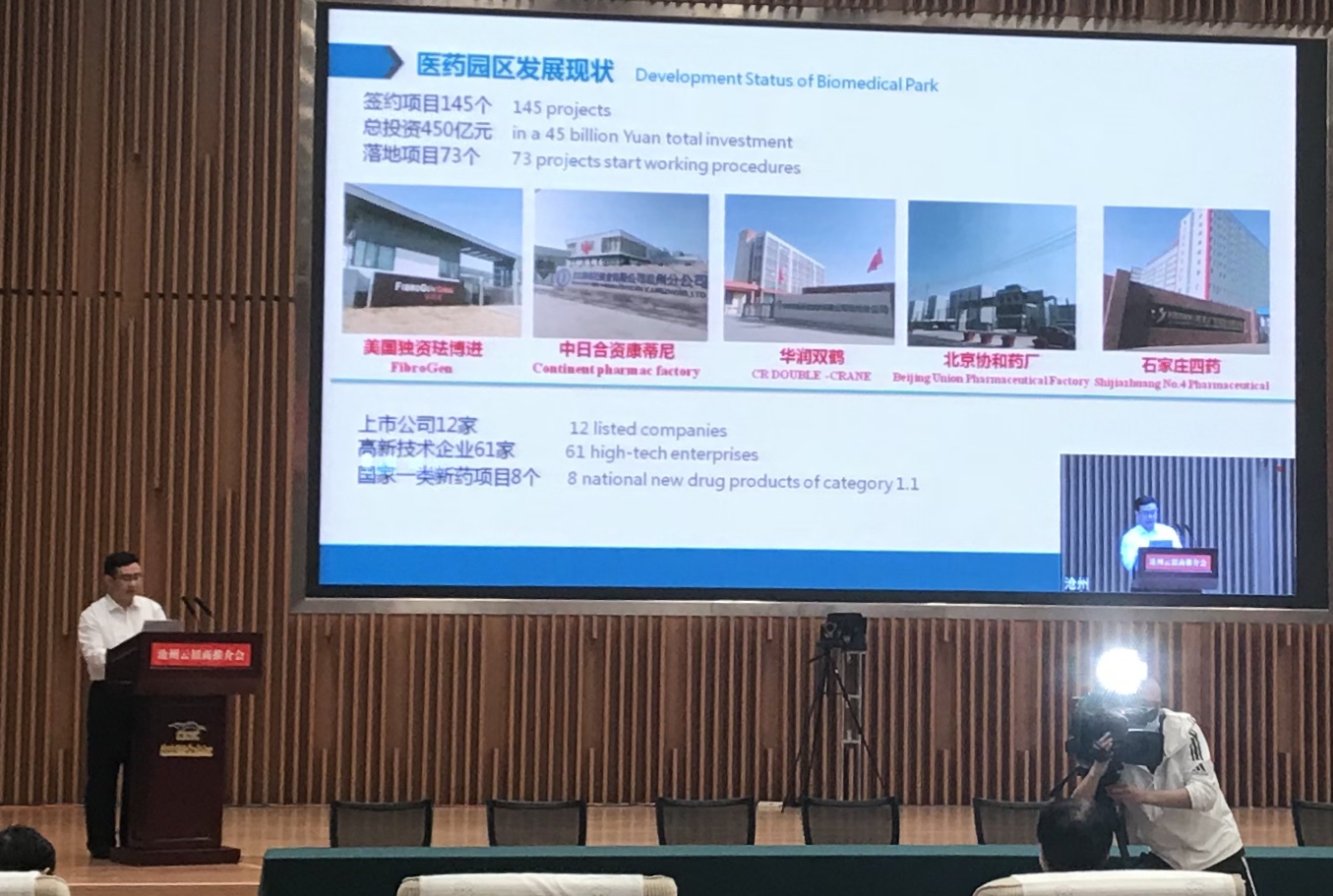 滄州臨港經濟技術開發區管委會副主任李國慶推介渤海新區生物醫藥產業園