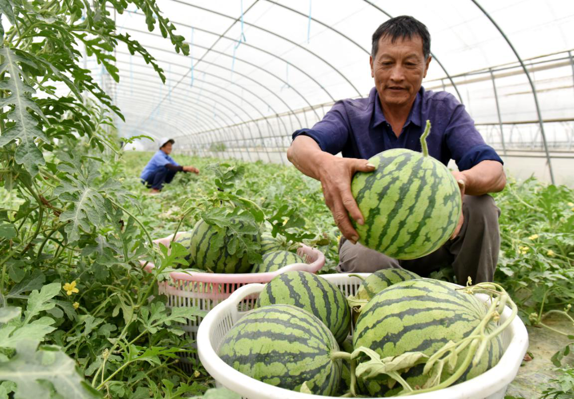 「今年,我們村扶貧產業園主要以大棚西瓜為主要種植項目,西瓜品種主要是『8424』,今年是第一年栽種,有專業的技術人員負責種植技術。」蘇灣鎮包坊村黨委第一書記湯賢德介紹,產業園引進了兩位有着多年種植西瓜經驗的致富能人,以及豐富的銷售渠道。目前72畝西瓜有30畝已經陸續上市,主要銷往巢湖、無為等周邊地區,還通過電商平台進行網上銷售。同時,發揮幫扶單位的作用,部分銷往合肥,「今年大棚西瓜可以為村裡帶來16萬元的村集體經濟收入。」說到西瓜產業園帶來的效益,湯賢德滿懷希望。