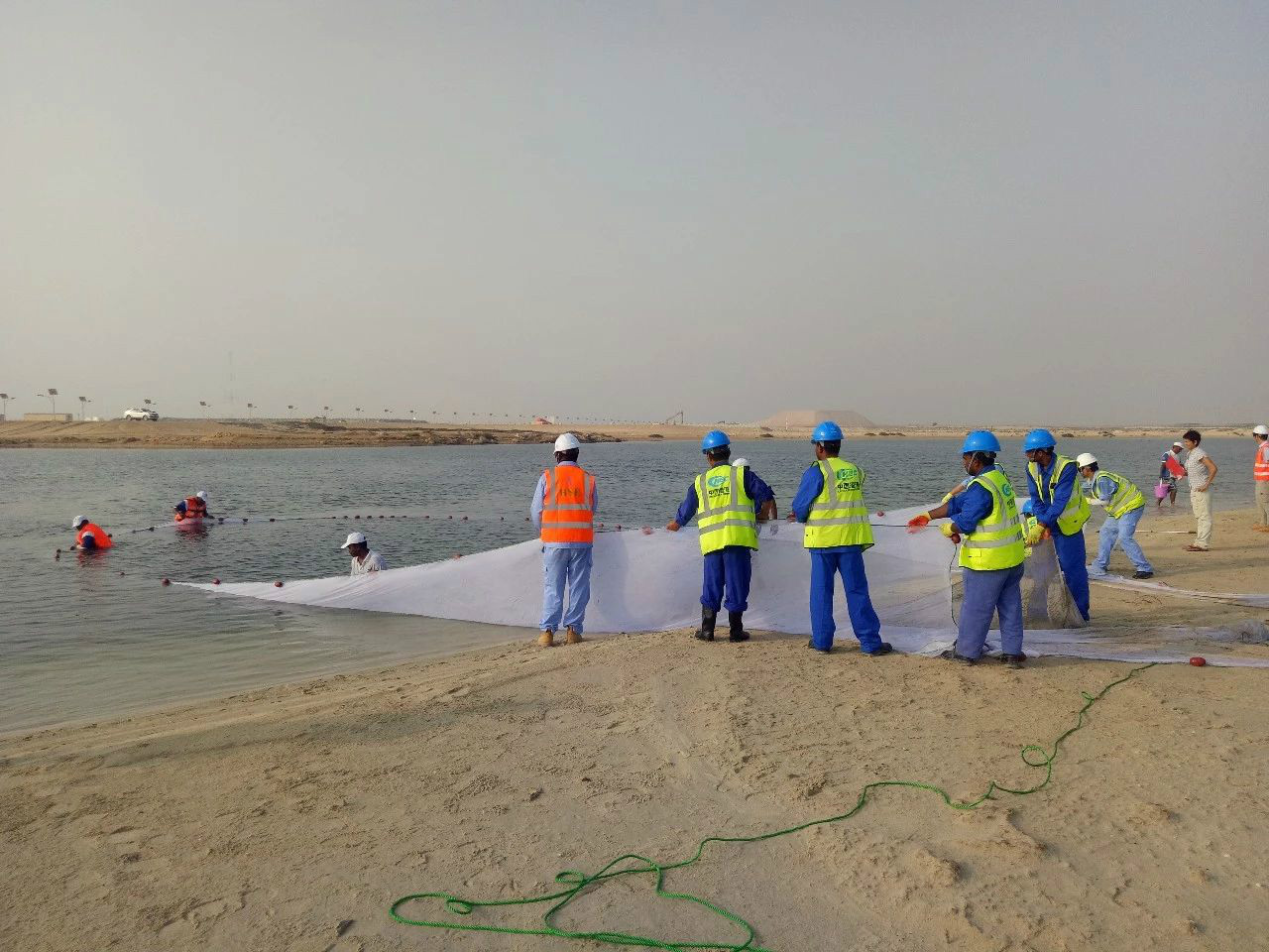 該項目現場人員正在將瀉湖區內魚類全部轉移至大海