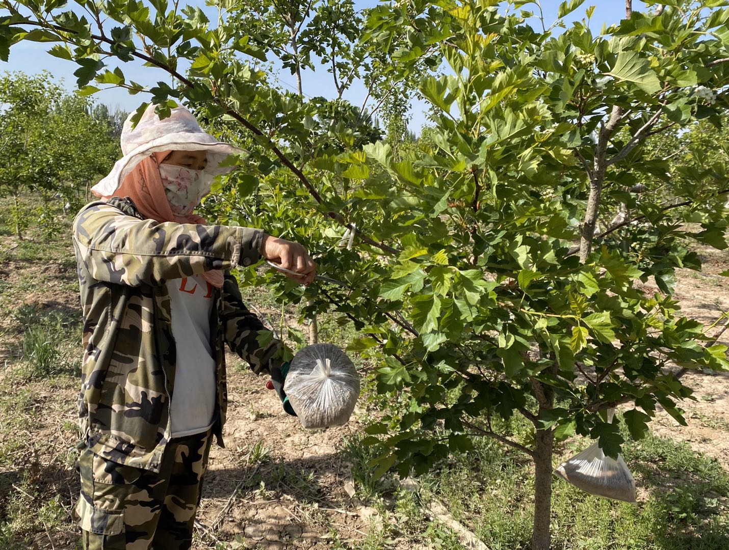 當地農民在山楂種植基地務工