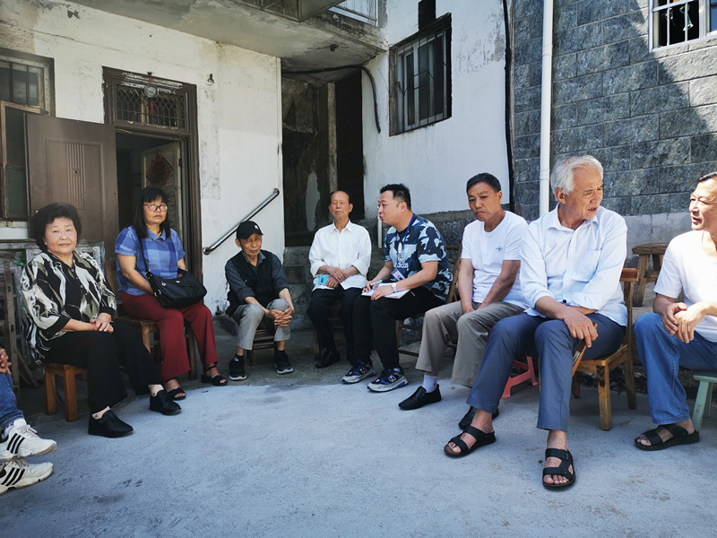 5月19日上午,在珠塘社區的西楊梅山社區,一場“長板凳”議事會正在進行,社區的工作人員和社區裏的老黨員、老幹部、網格員等正在討論社區道路建設、亮化等問題。