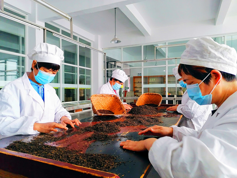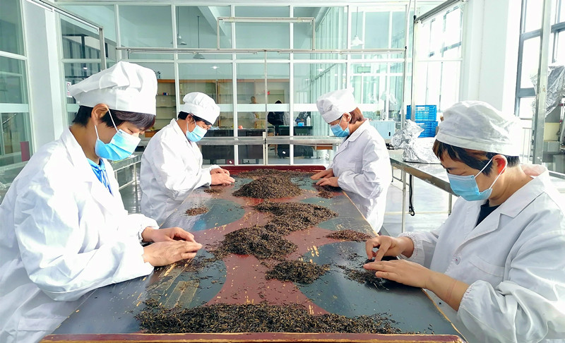 【香港商報網訊】5月21日,首個國際茶日,安徽省黃山市祁眉茶旅公司生產車間裏,員工正在崗位上精挑細選出口祁門紅茶。
