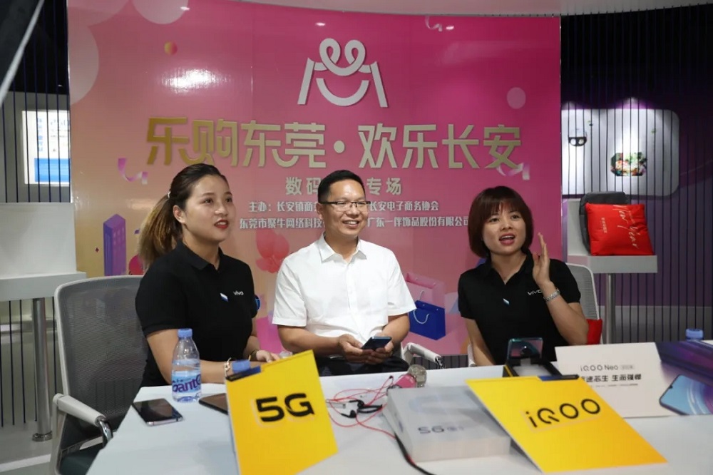 東莞長安鎮長覃春為本土產電子產品直播帶貨
