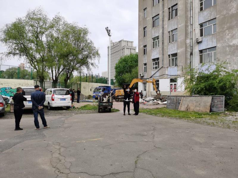 【香港商報網訊】近日,哈爾濱市香坊區建築辦事處在區城管行政執法局的配合下,對哈爾濱某大學南區院內、麗郡、聞達綠都三個小區14處違法建築以及32處佔用高層消防連廊設施進行拆除。