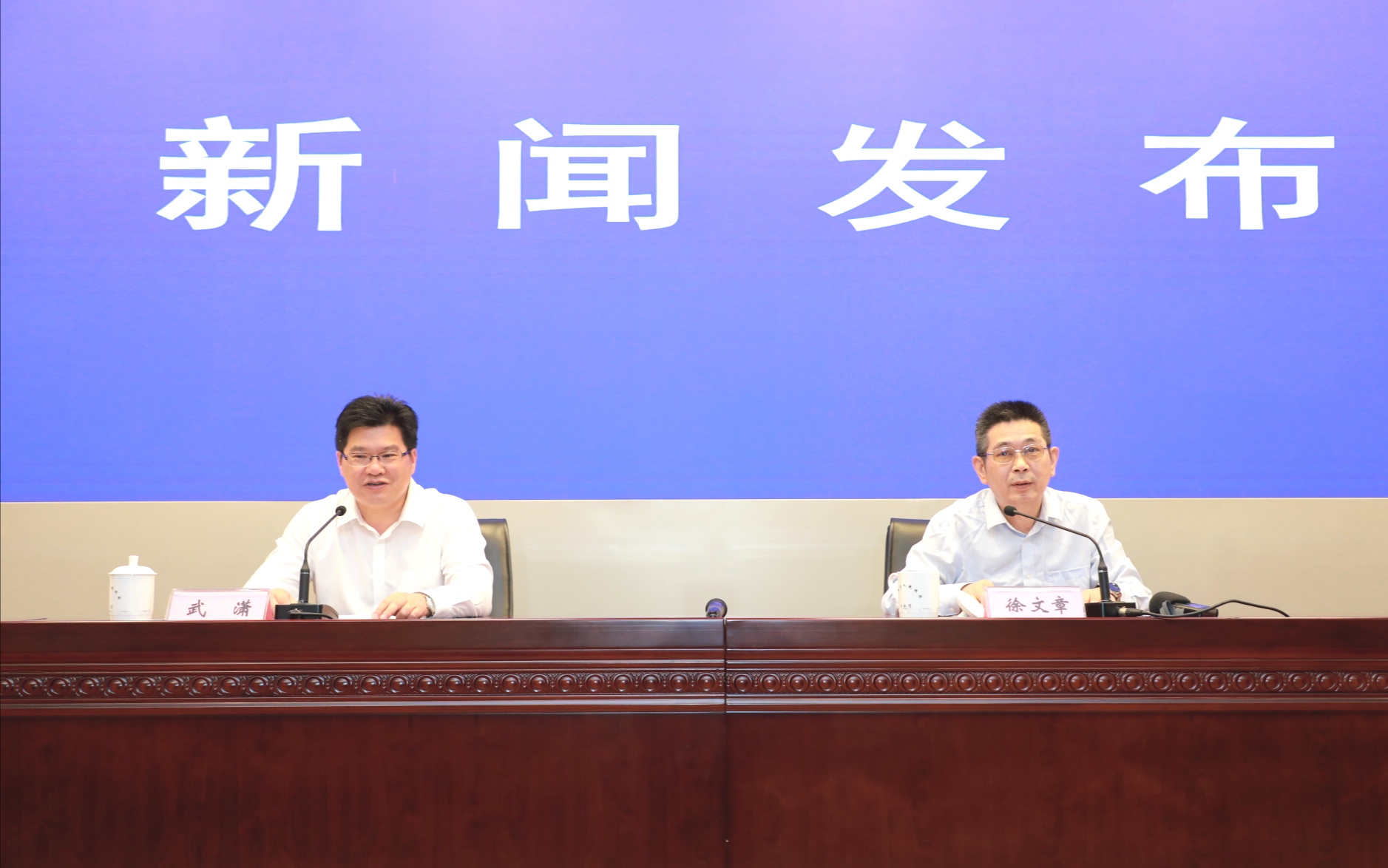 安徽省貫徹落實中央「六穩」「六保」部署要求系列新聞發佈會(第七場),安徽省委宣傳部新聞發佈處處長武瀟(左)主持發佈會,省經濟和信息化廳黨組成員、總工程師徐文章介紹相關情況並回答記者提問