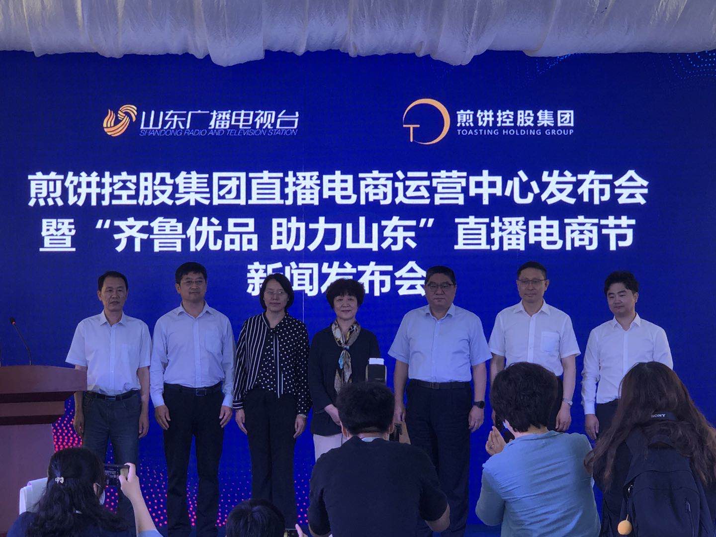 5月26日上午,煎餅控股集團直播電商運營中心發佈會暨「齊魯優品 助力山東」直播電商節新聞發佈會在濟南齊魯創新谷舉辦。