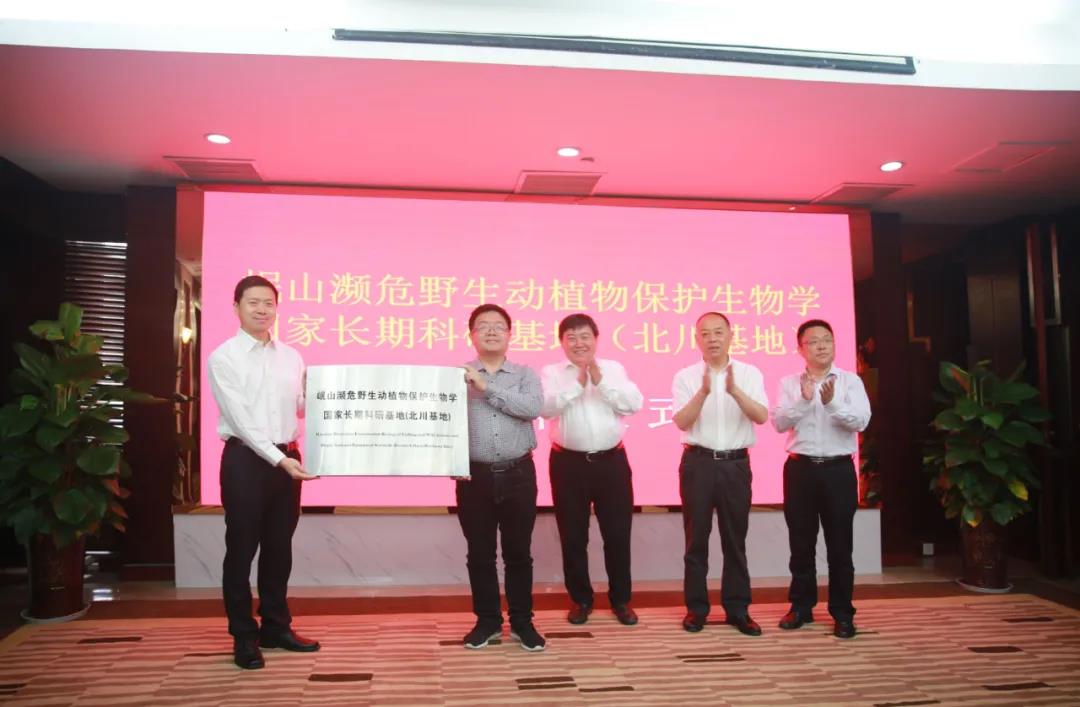 中國大熊貓保護研究中心黨委書記、副主任路永斌為北川基地授牌 中共北川羌族自治縣委書記賴俊接牌