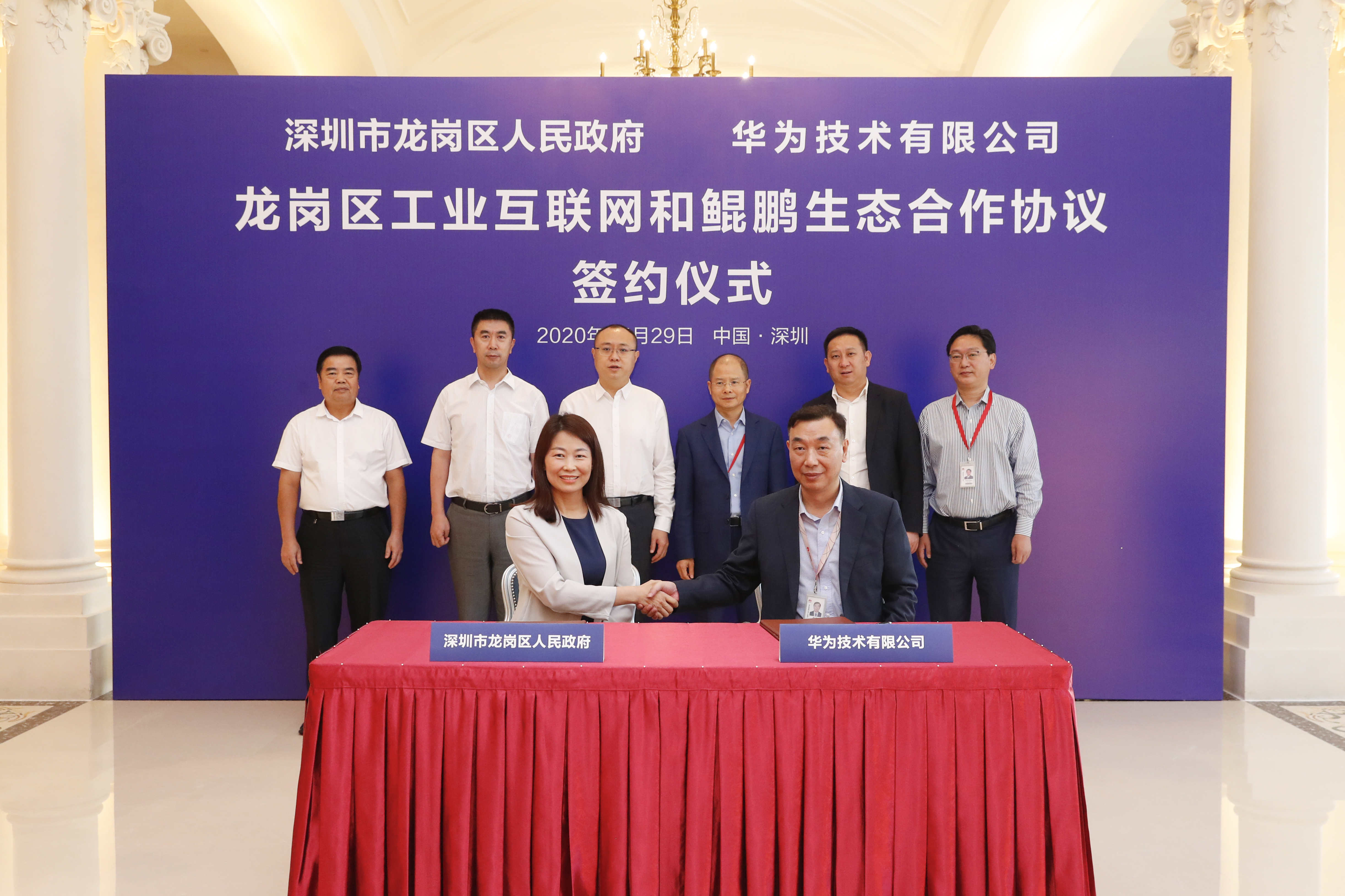 【香港商報網訊】5月29日下午,龍崗區工業和信息化局與華為技術有限公司在華為總部舉行深圳市龍崗區工業互聯網和鯤鵬生態合作協議簽署儀式。此次簽約將推動新興技術與實體經濟深度融合,助力龍崗區打造創新驅動、應用引領、生態活躍的全國工業互聯網領先地區。龍崗區委書記張勇,龍崗區委副書記、區長代金濤,龍崗區副區長陳廣文,華為公司輪值董事長徐直軍,華為公司諮詢與集成使能服務部總裁馬海旭出席簽約儀式。