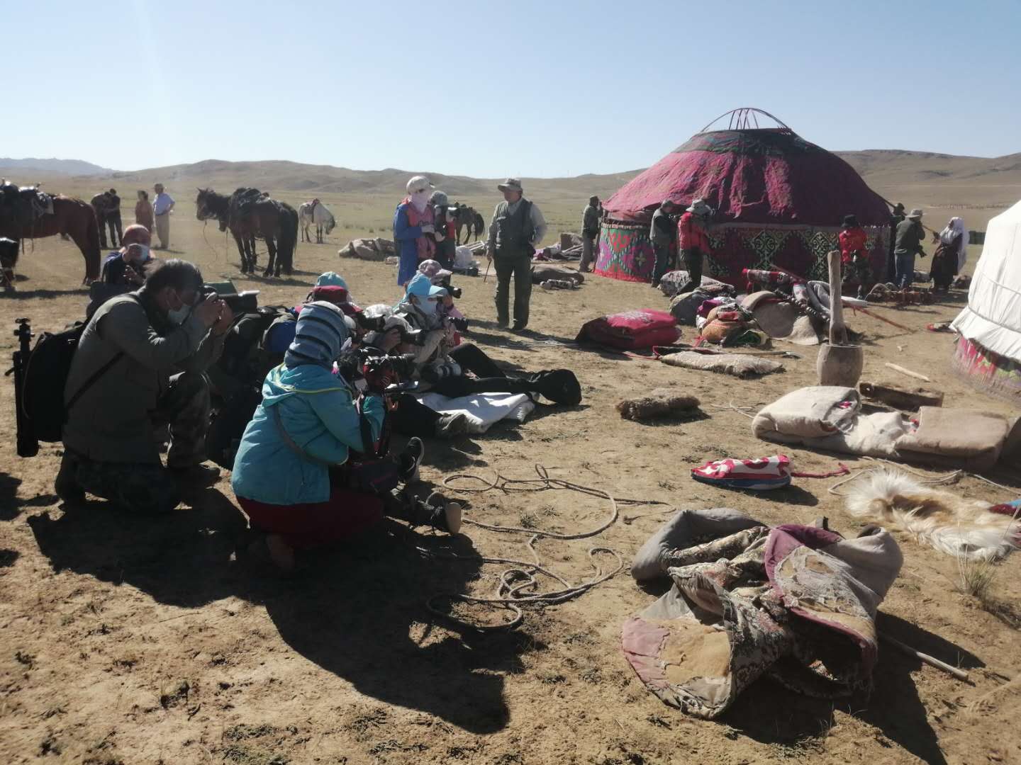 在現場,記者採訪了原福海縣教育局黨委書記扎曼別克·滿朱汗,他說:評選牧民將以戶為單位,每戶由五人組成,以傳統轉場方式進行表演式的轉場,此次參賽共有20戶,參賽牧戶要提前準備好馬、駱駝、牧羊犬、傳統氈房配套設施以及轉場專用生活用品,並對牧戶轉場每個環節進行打分。打分項目包括參賽牧戶準備的馬、駱駝、氈房及其配套設施;提前捆紮好轉場所需生活物品;將氈房設施及生活用品馱在駱駝身上;騎着馬、牽駱駝表演式的轉場1公里左右的路程;到達指定地點搭建、裝飾氈房,收拾房內生活物品等。